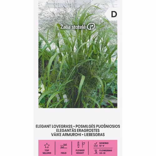 En ettårig, dekorativ 50 cm hög gräsväxt med praktfulla blad och blomställningar. Den blommande växten skapar ett intryck av en rosa dimma. Lämplig som kantväxt, i naturalistiska planteringar och för odling i krukor. Perfekt som fyllningsväxt i rabatter, passar bra ihop med blommor i starka färger. Odlas i soligt läge, vattengenomsläpplig jord, växten trivs inte i blött jord. Större plantor planteras ute i rabatter.