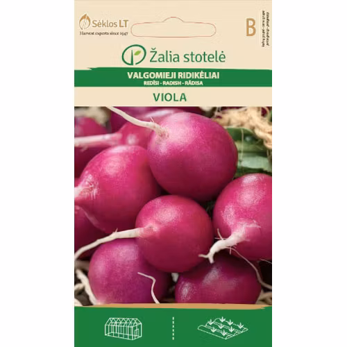 Medeltidig sort, skördas 36–38 dagar efter grodd. Rotfrukten är rund, violett, kraftig och förväxer ej under lång tid. Fruktköttet är vitt och saftigt med mild smak. Växer bäst i lätt och medeltung, uppluckrad, humusrik, ogräsfri och ej sur jord. Sås lämpligast utomhus under mars-april.