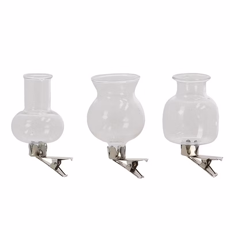 3 st olika mini vaser med klämfäste för att tex sätta på en gren.