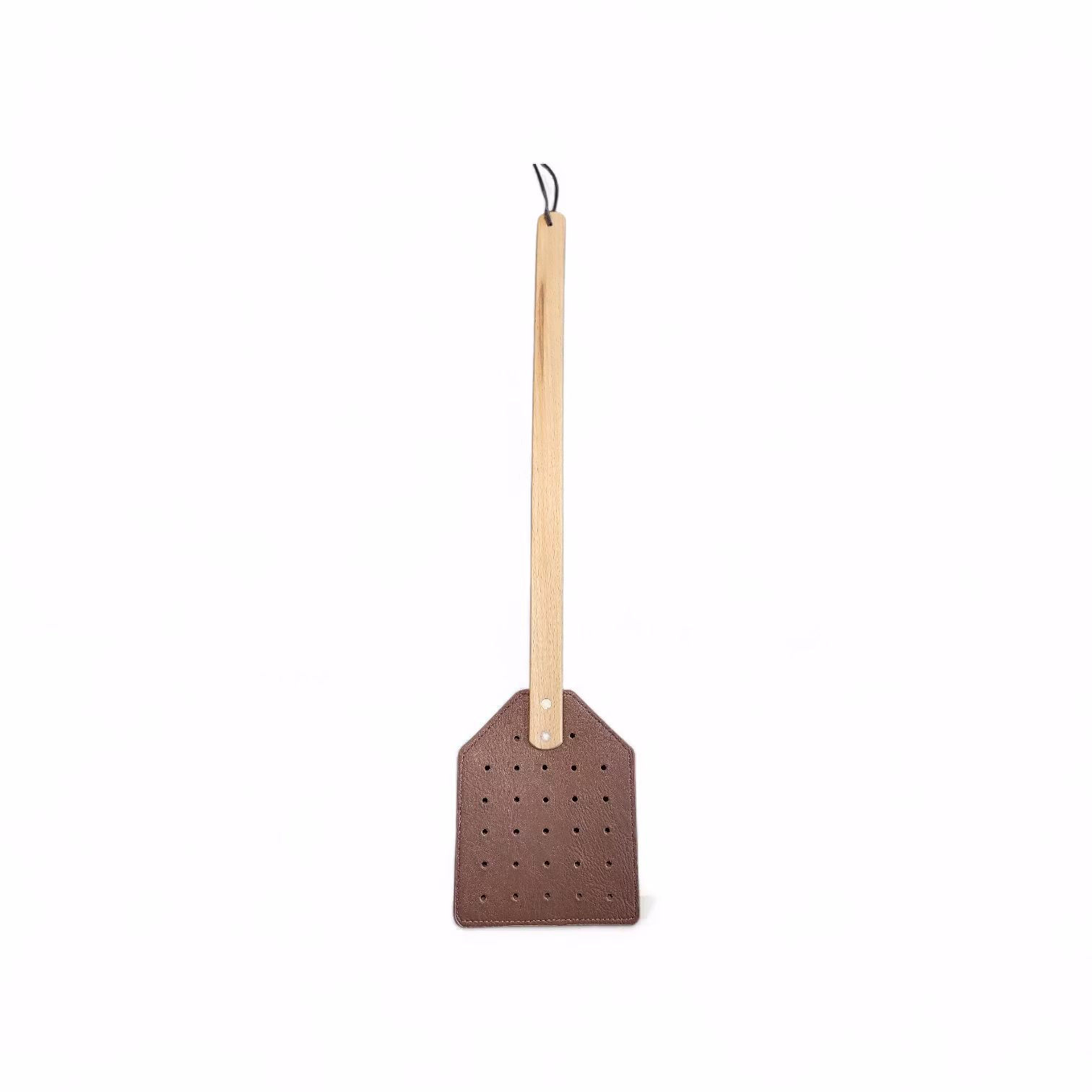 Flugsmälla i läder med trähandtag