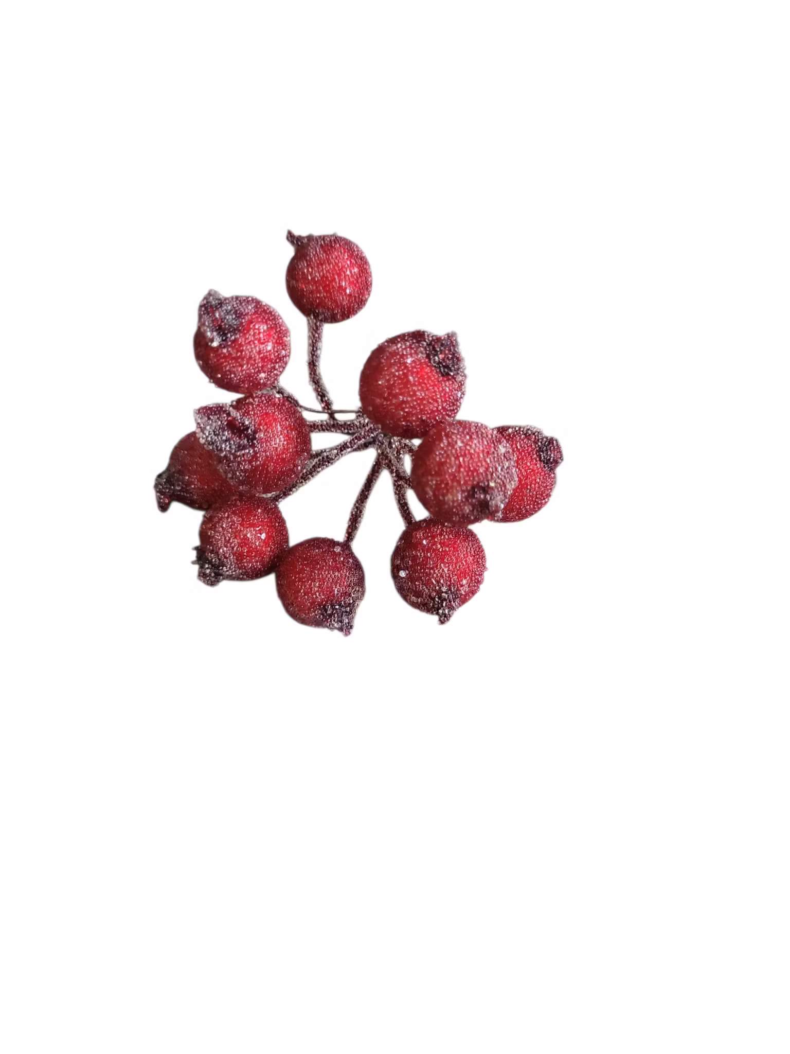 Röda frostade granatäpple i plast höjd 10 cm, nypon 2cm 10 st / bunt
