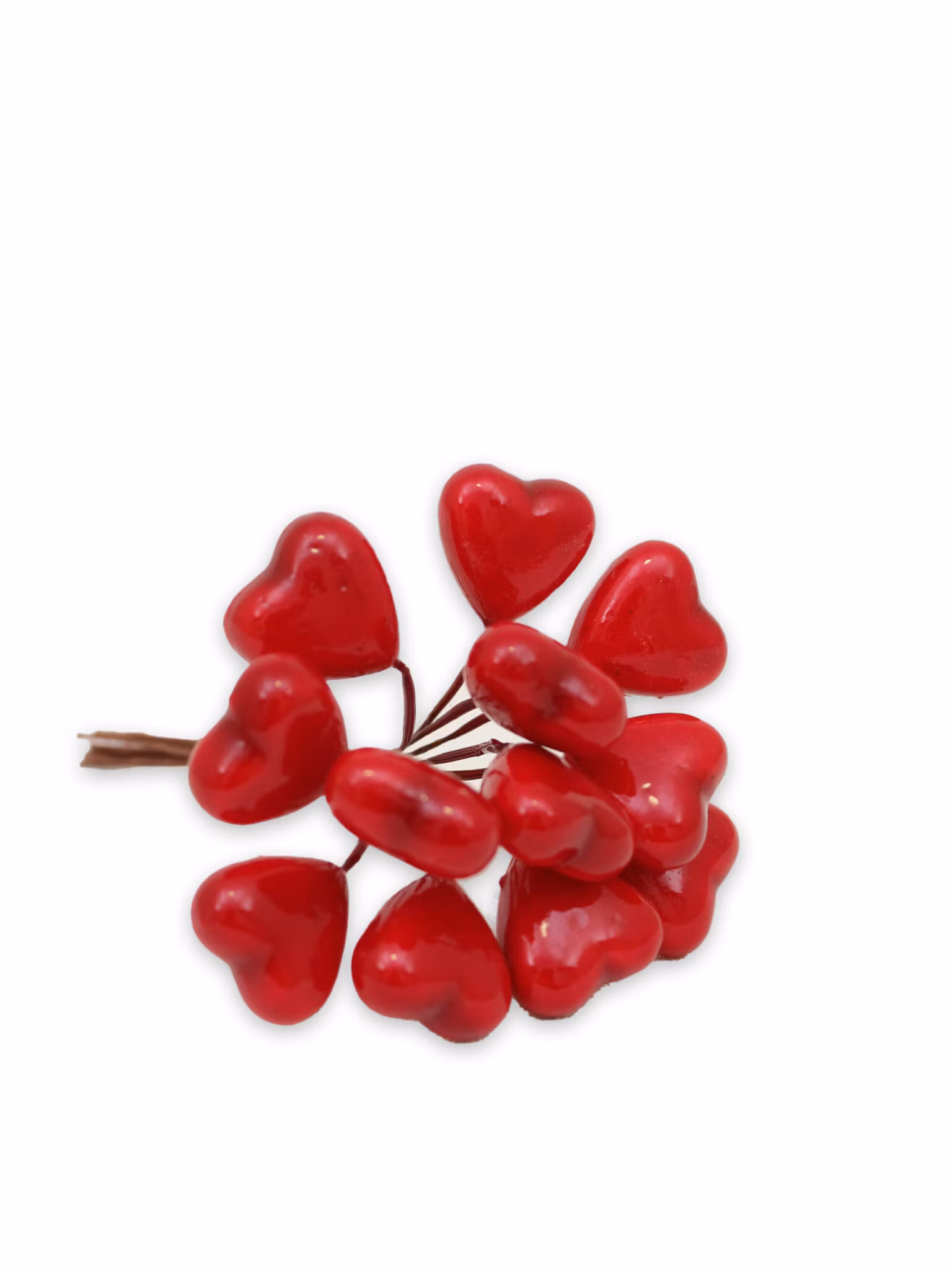 Sticks röda hjärtan med ståltråd 10 st/bunt 14 cm äpple 2 cm