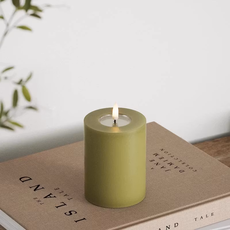 LED blockljus Ø 7,5 x 10 cm olivgrön