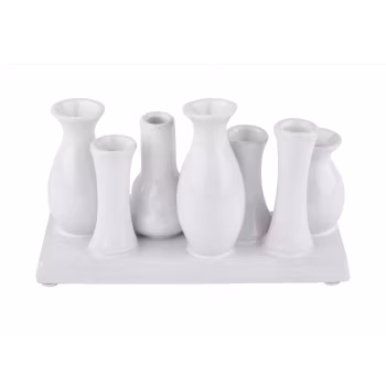 Fat med med 7 minivaser på i vitt