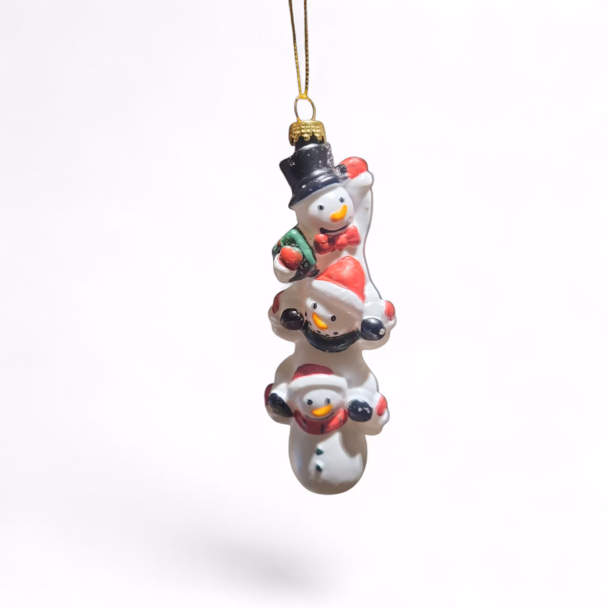 Juldekoration i formen av 3 snögubbar på varandra. En lekfull dekoration som ger granen en vinterkänsla.