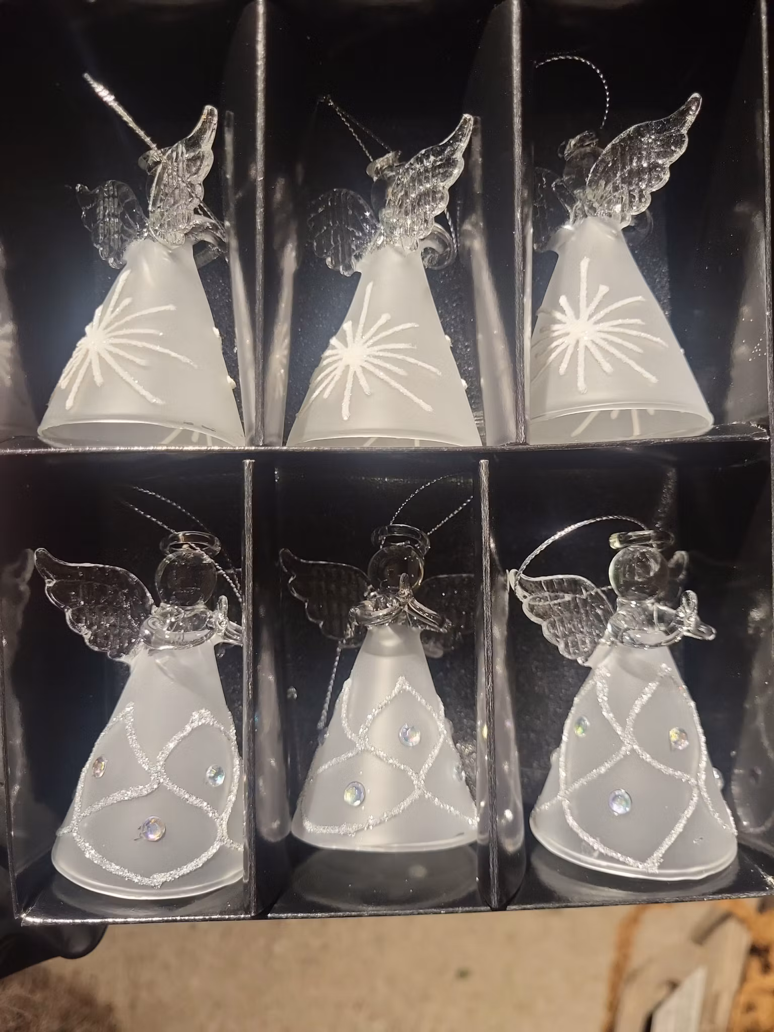 Ängel juldekoration i glas. Ängel i klart glas med en klänning av frostat glas med 2 olika mönster. 6-pack med 3 av varje sort.