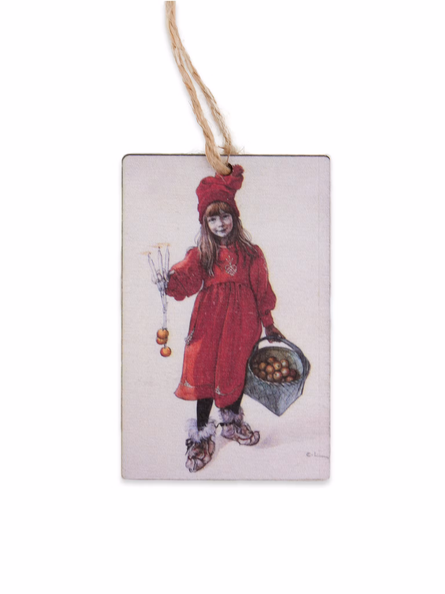 Trä tag med Carl Larssons klassiska motiv Brita som Idun 7*4,5 cm