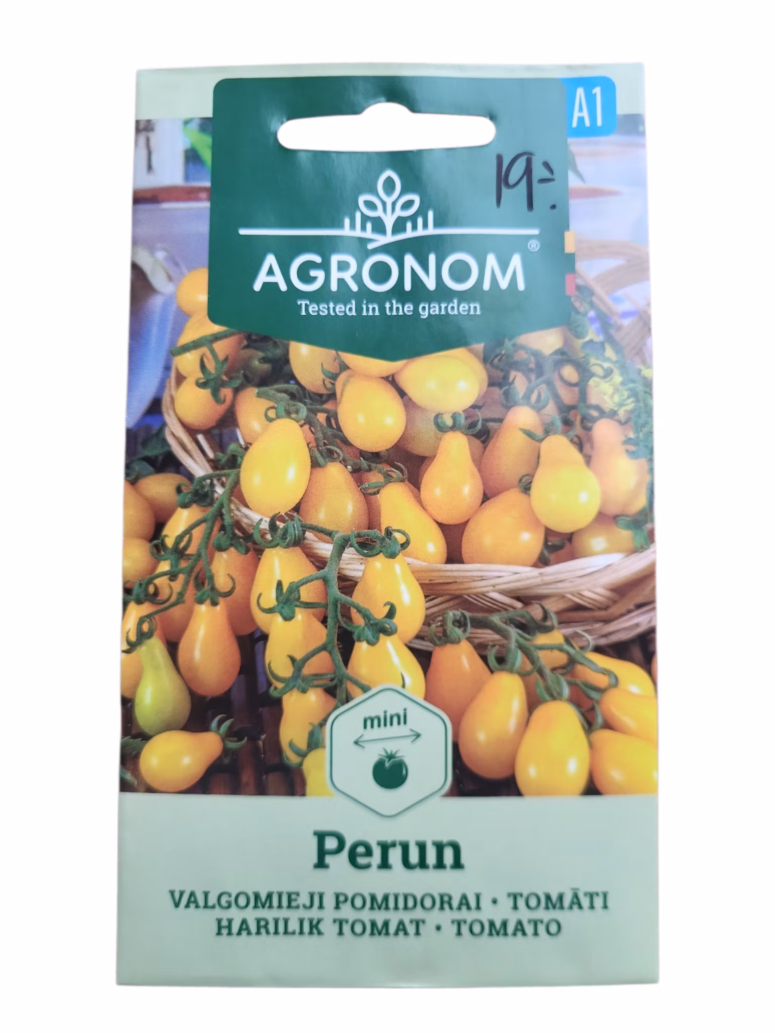 Körsbärstomat gul högväxande. Frukterna blir päronformade och väger ca: 15-20g/st. Odlas på friland eller i växthus.