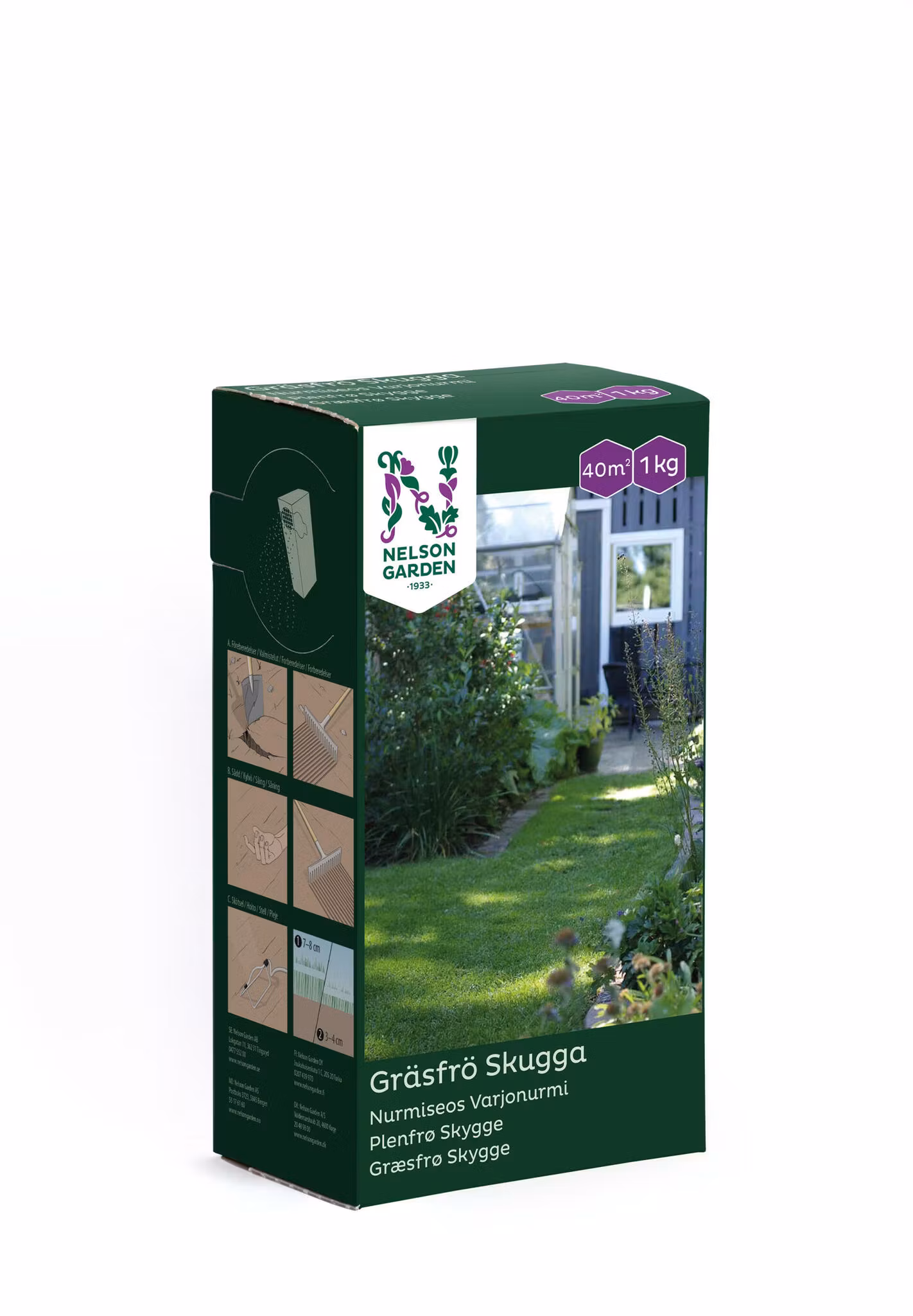 Vår skuggtåliga gräsfröblandning. Passar i trädgårdens lite mörkare och fuktigare delar, t.ex. under häckar och träd. Ger en tät grönska i svåra lägen. Vinterhärdig.
