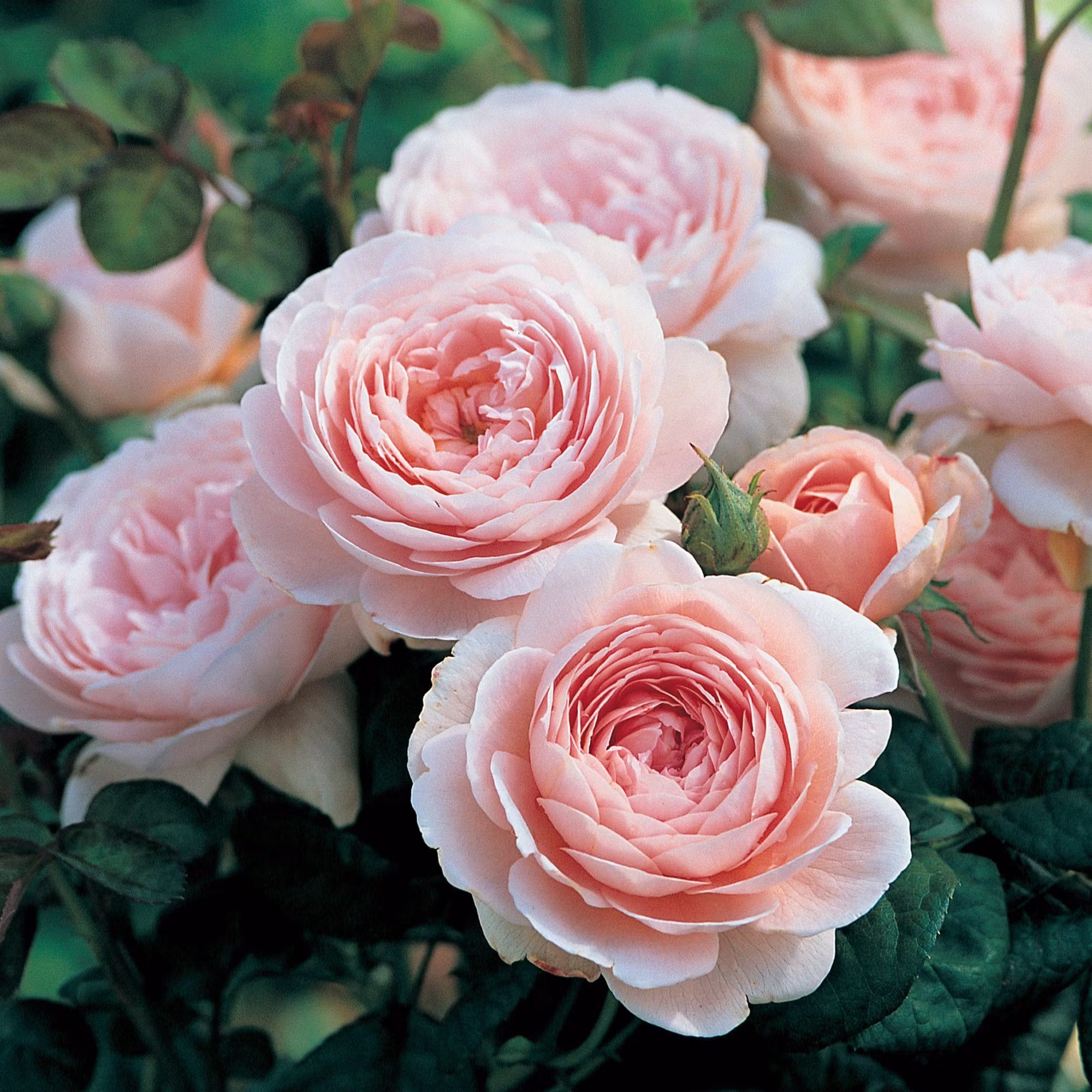 'Queen of Sweden' (Austiger) är en engelsk buskros från David Austin, känd för sina eleganta, skålformade blommor i en mjuk rosa nyans som bleknar till nästan vit. Den har en mild och behaglig doft. Rosens upprätta och kompakta växtsätt gör den idealisk för formella rabatter och häckar. 'Queen of Sweden' blommar kontinuerligt från sommar till höst och är mycket motståndskraftig mot sjukdomar, vilket gör den lättskött och pålitlig i trädgården. Dess stilrena och sofistikerade utseende gör den till ett populärt val för trädgårdar med en klassisk eller modern design.