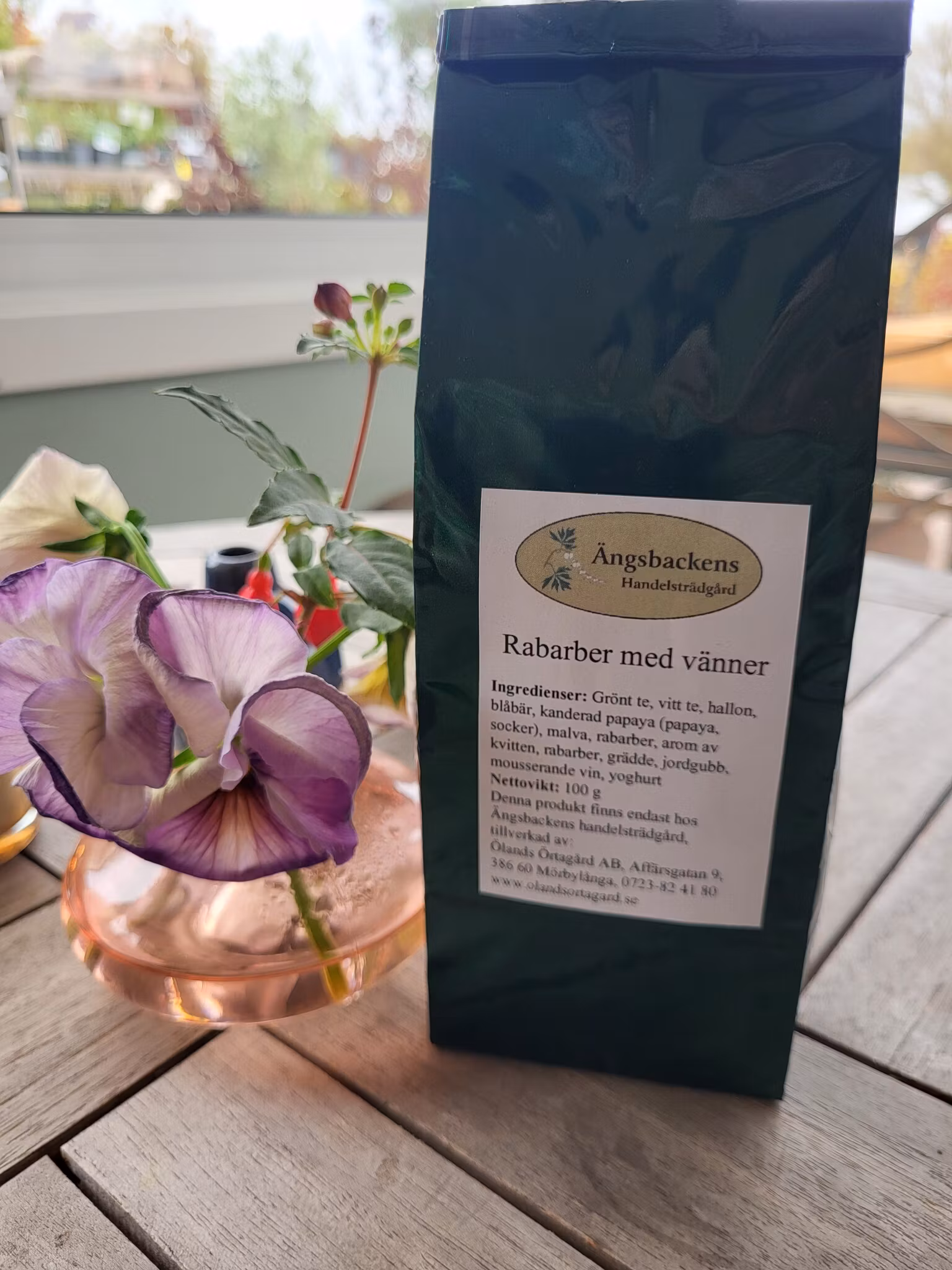 Grönt te, vitt te, hallon, blåbär, kanderad papaya(papaya, socker), malva, rabarber, grädde, jordgubb, mousserande vin, yoghurt.