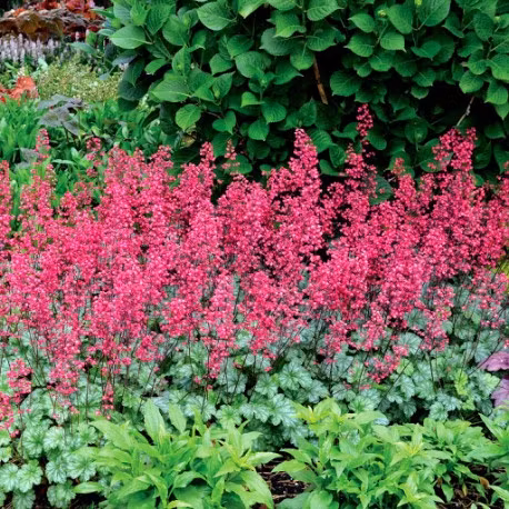Tuvbildande perenn med dekorativt, frodigt bladverk. Sorten har lätt flikiga bladkanter och friskt grönt bladverk med silvermarmorering och mörka nerver. Blommar med skira små, ceriserosa blomklockor på stänglar som lockar till sig våra pollinatörer.