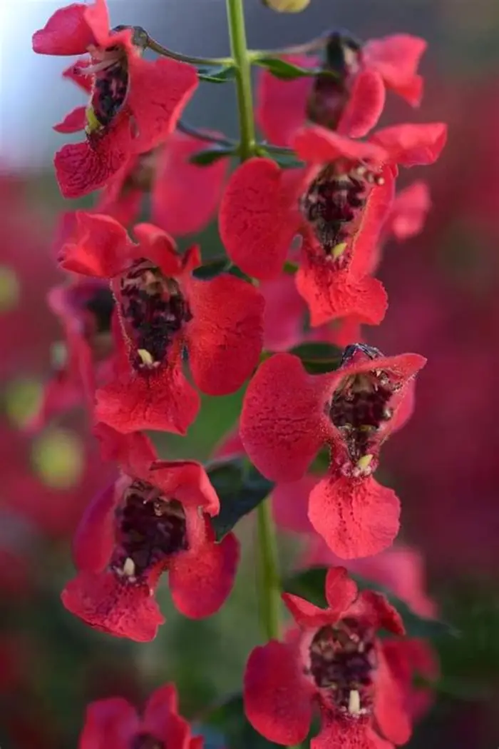 Upprättväxande, senare något bågböjda grenar. Bladen är spetsigt lansettformade, friskt gröna och har tandade kanter. Blommorna sitter i spiror i grentopparna, är tvåläppiga som små lejongap. Blommar ända till frost.