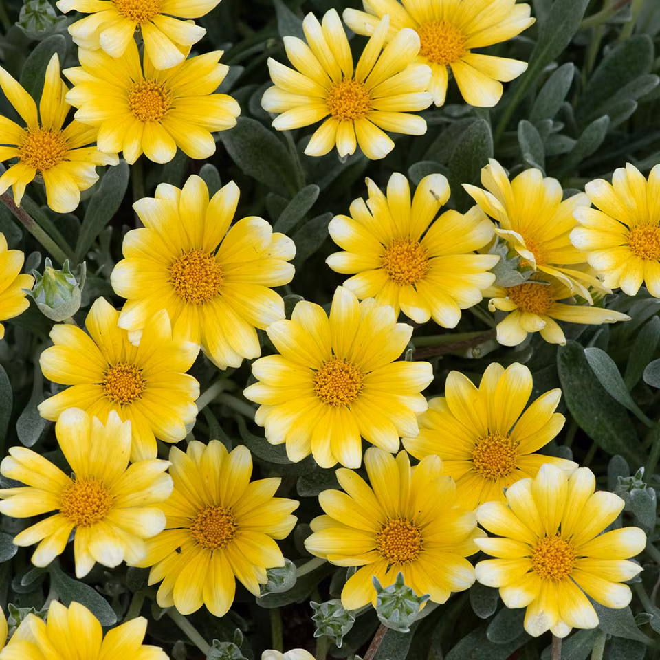 Påfågelblomster ‘Sun Stopper Lemon’ bjuder på stora, klargula blommor som öppnar sig i solen och ger rabatter och krukor en strålande färgklick.